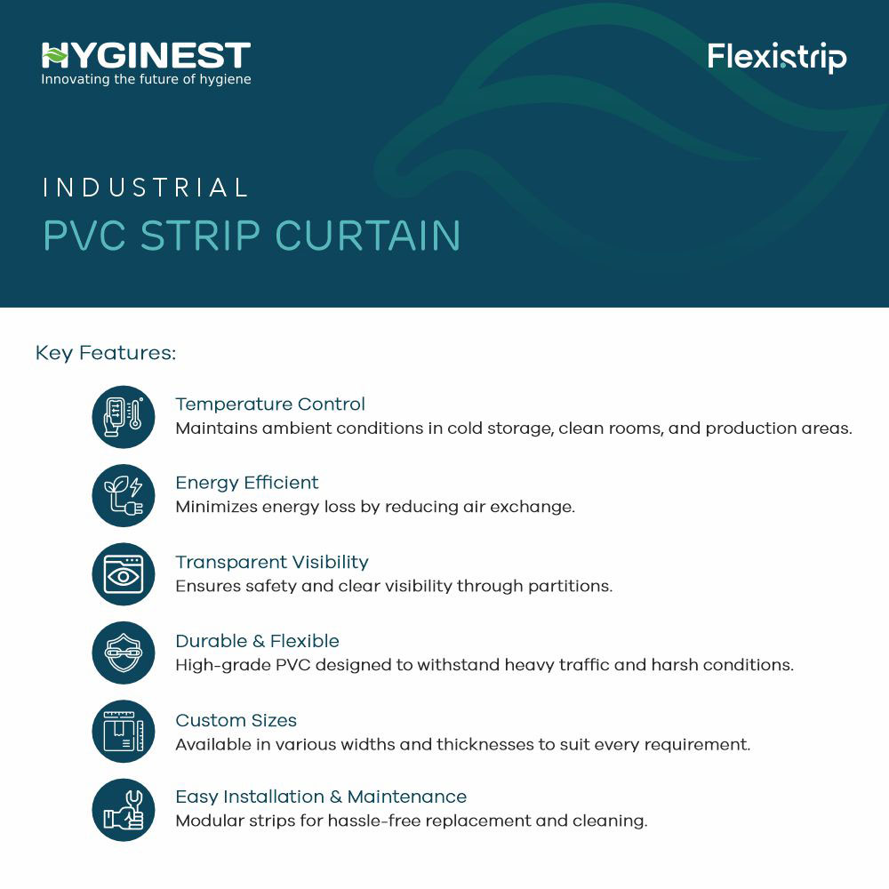 It is a hygienic and energy-saving barrier made from high-quality PVC strips to control temperature and prevent dust and insects.